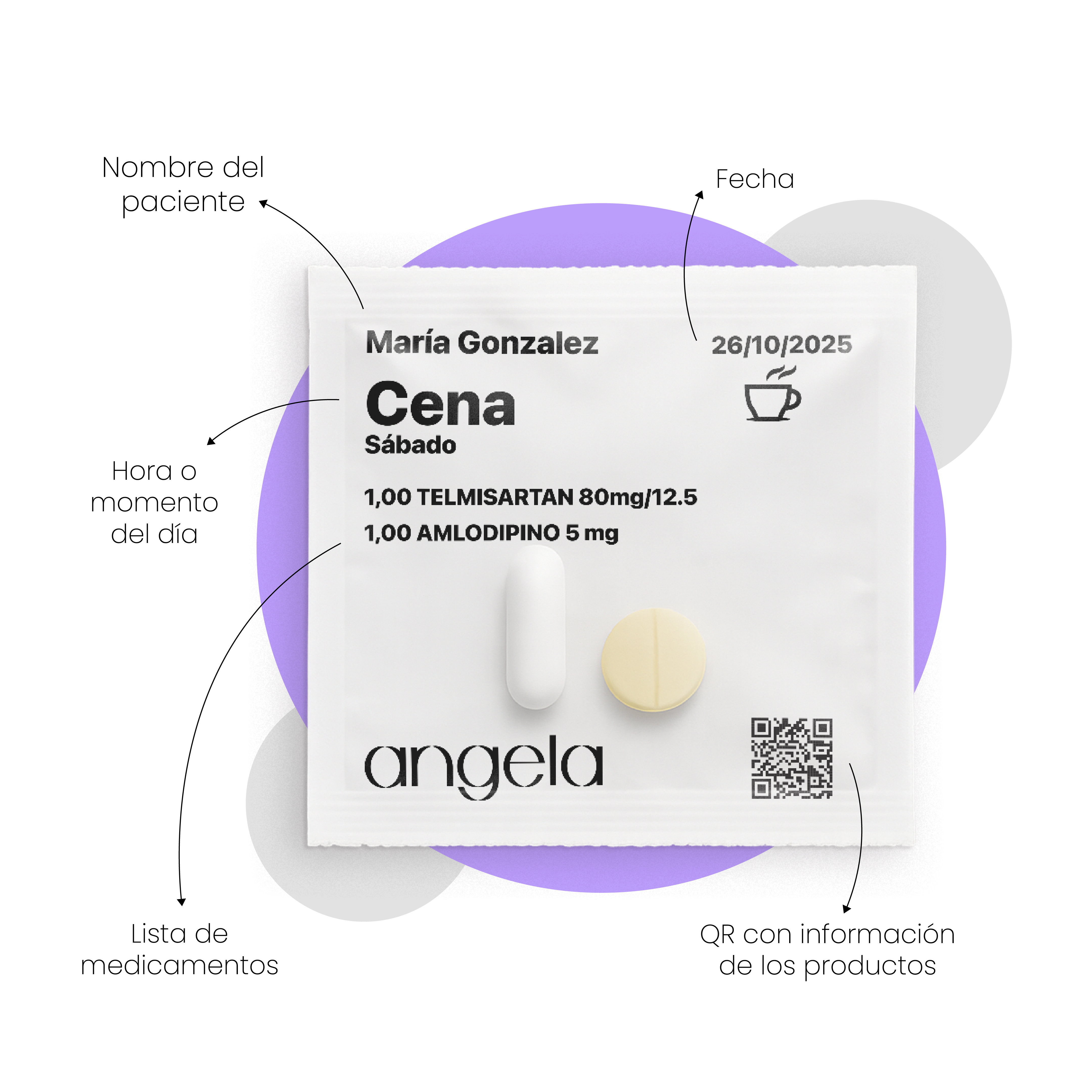 Tus medicamentos o los de tu familiar organizados por fecha, hora y dosis. Todo personalizado para ti.